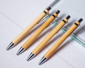 This is a Bamboo Wood Ballpoint Pen. It is a high-quality pen and has a cover case made of bamboo wood. This pen is an excellent stationery gift and can be branded with a logo, name, slogan, and much more.