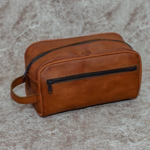 Our Pure Leather Toiletry Bag is made of brown pure leather material. This bag is spacious and very durable. It can hold all of your toiletries, personal care items, or cosmetics so that you can pack light and travel in style. The bag also has a side pocket where you can put items that you want to access easily.