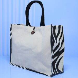 Upgrade your bag collection today with this trendy, reusable, and eco-friendly zebra print jute canvas bag – where style meets sustainability.