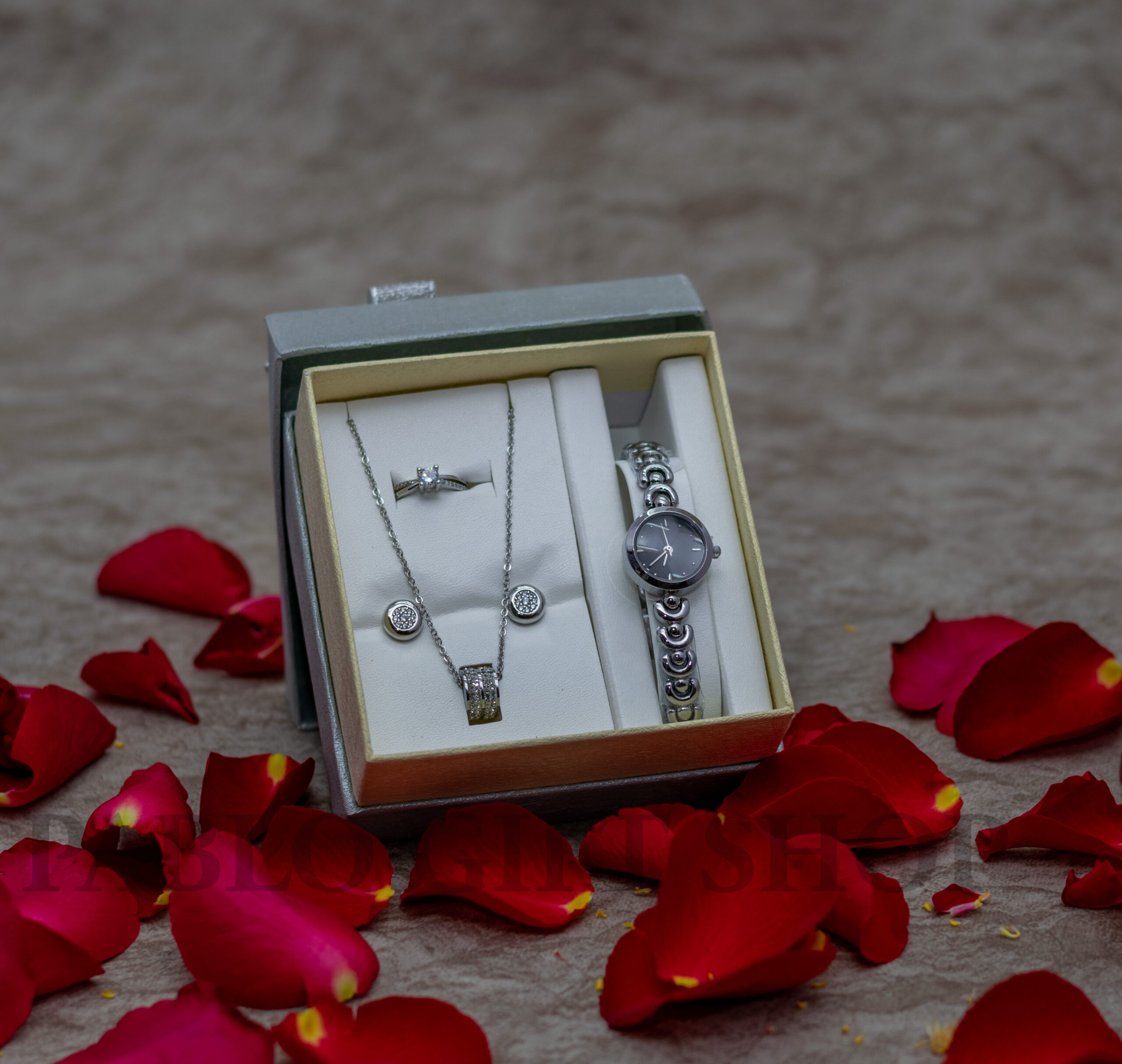 Jewellery Set with a Matching Watch, Necklace, ring & Earrings Jewellery Set. Resizable ring to fit all finger sizes
