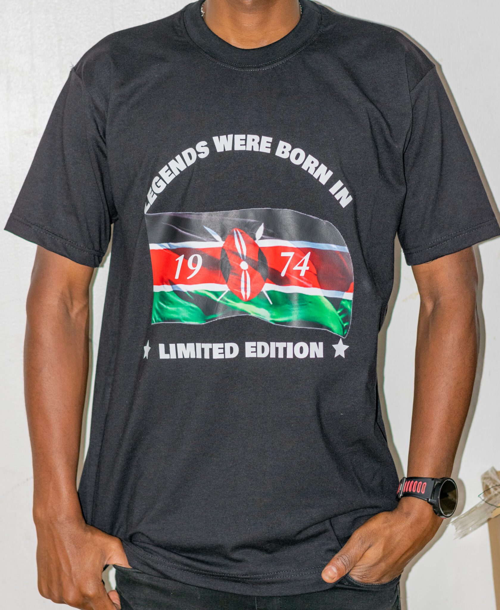 Upgrade your wardrobe with this Black T-Shirt Customized with the Kenyan Flag—a perfect blend of fashion and patriotism!