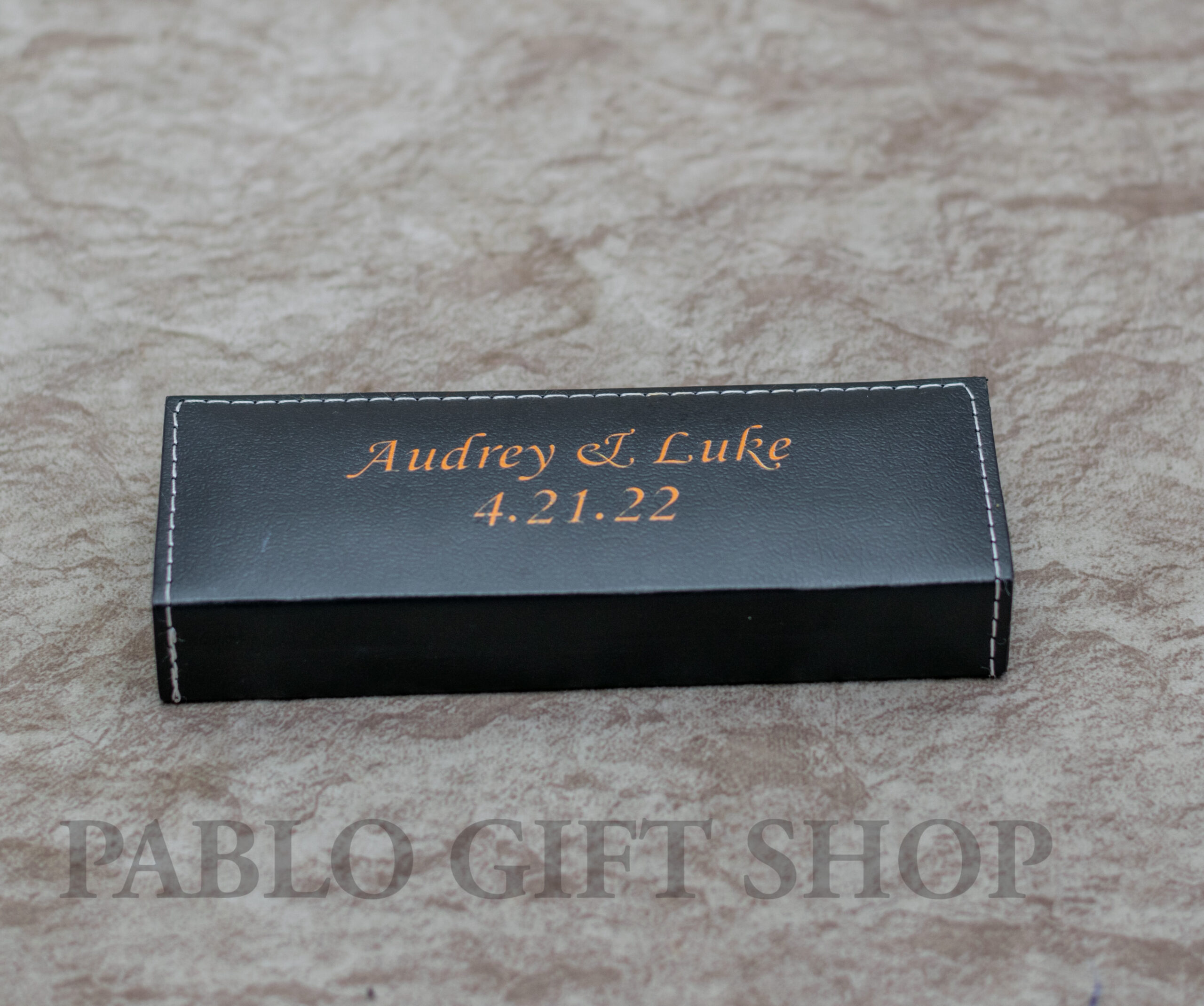 The Customized Notebook and Executive Pen in a Case have been branded with the names Luke and Audrey, a date, and a message. This is a great gift for a couple to put down their memories. These items can also be a good corporate gift. The notebook will be useful for storing names, addresses, and phone numbers that are needed on daily basis.