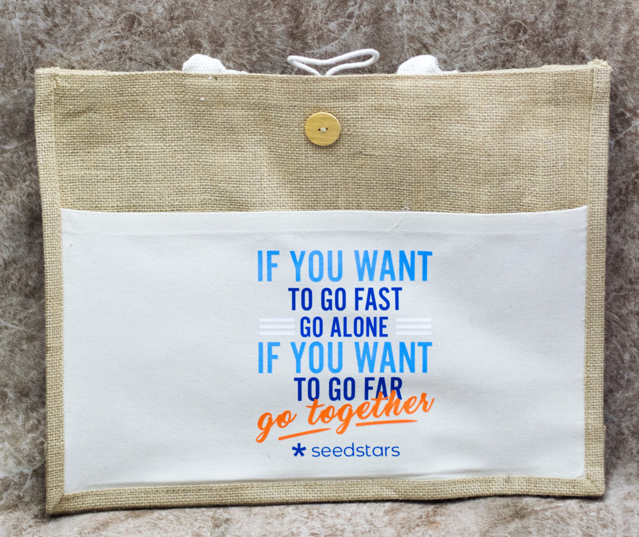 Choose this motivational jute pouch to promote sustainability, collaboration, and purpose—because going far is better when you go together.