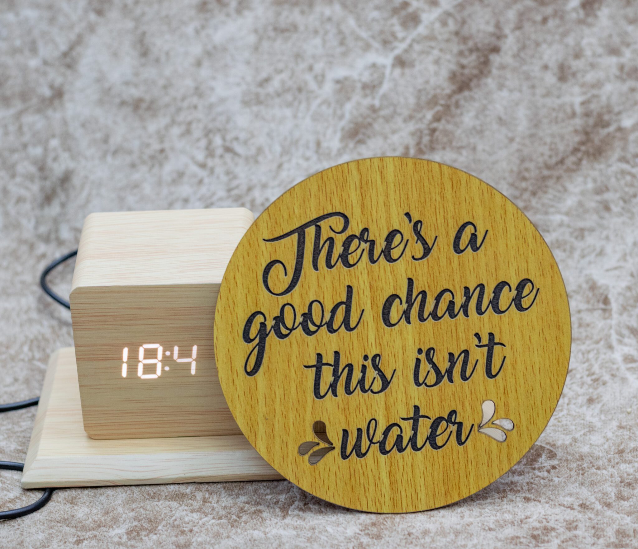 - Stylish Design: A refined wooden pen holder with a matching coaster.