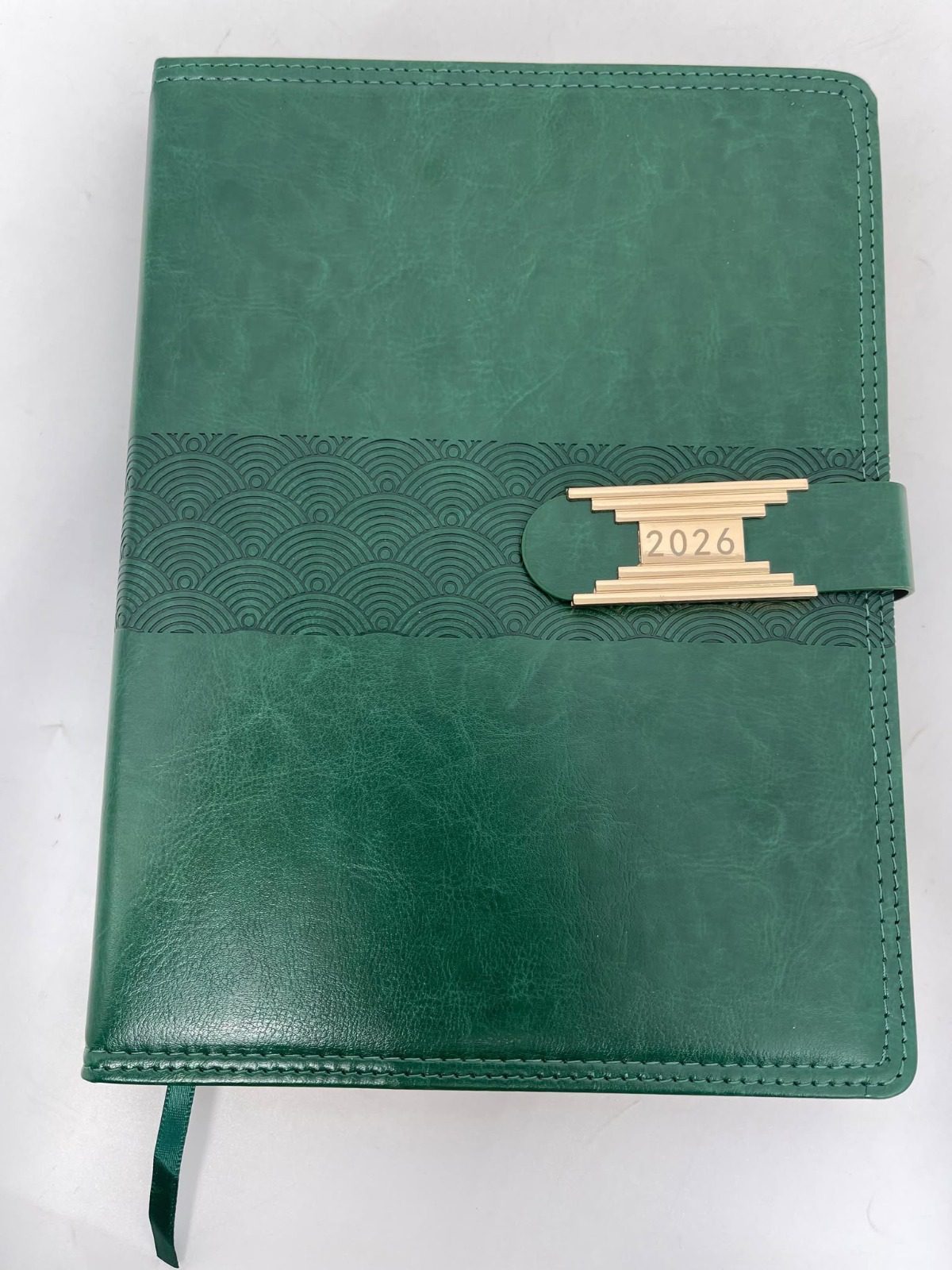 Distinctive Design Elements The diary features an eye-catching art deco-inspired wave pattern band that wraps around the cover, complemented by a sophisticated metal clasp embossed with “2026.” This unique closure system keeps your pages secure while adding a touch of vintage charm to the modern design.