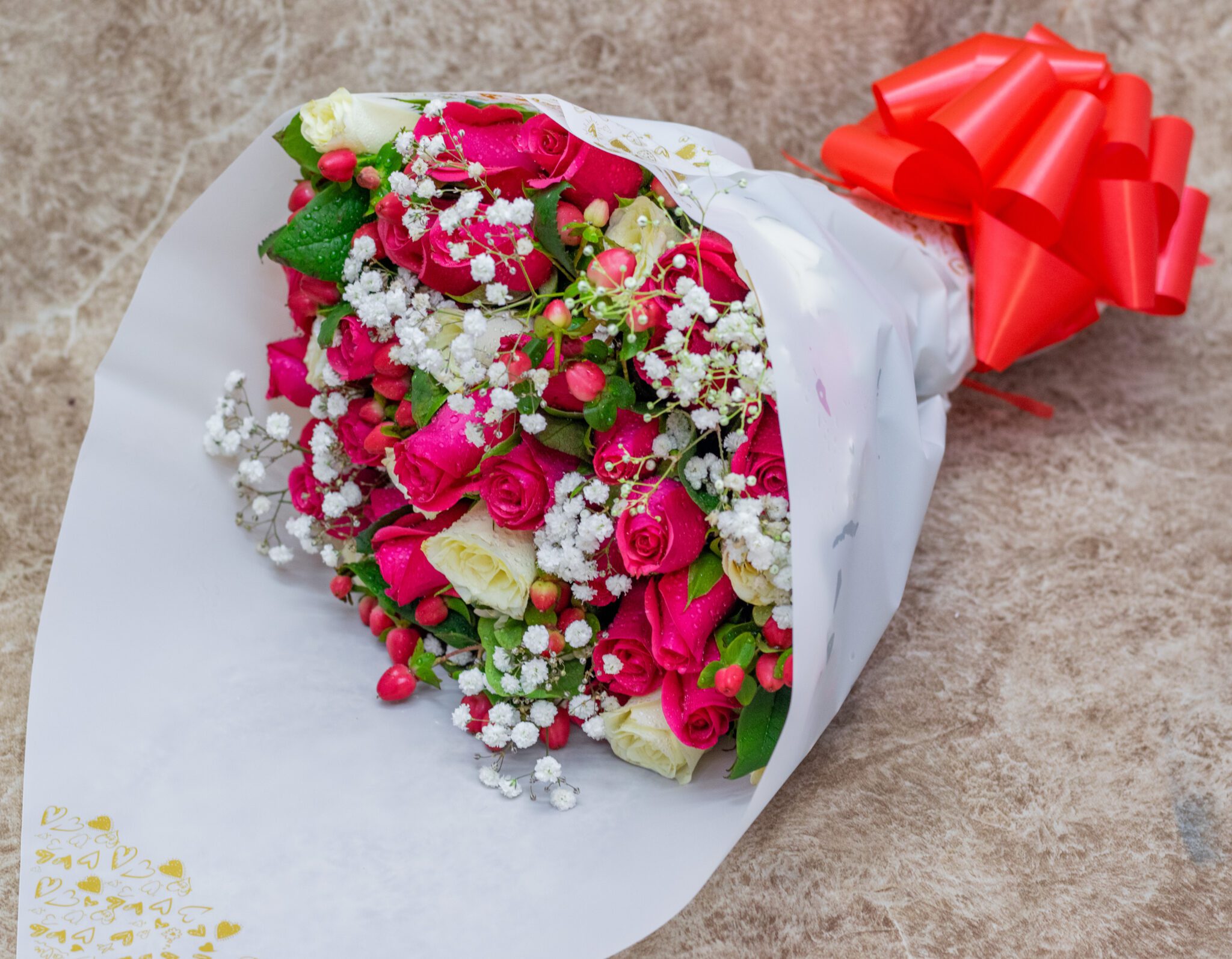 Bloom with Elegance: Freshly Arranged Roses with Baby’s Breath