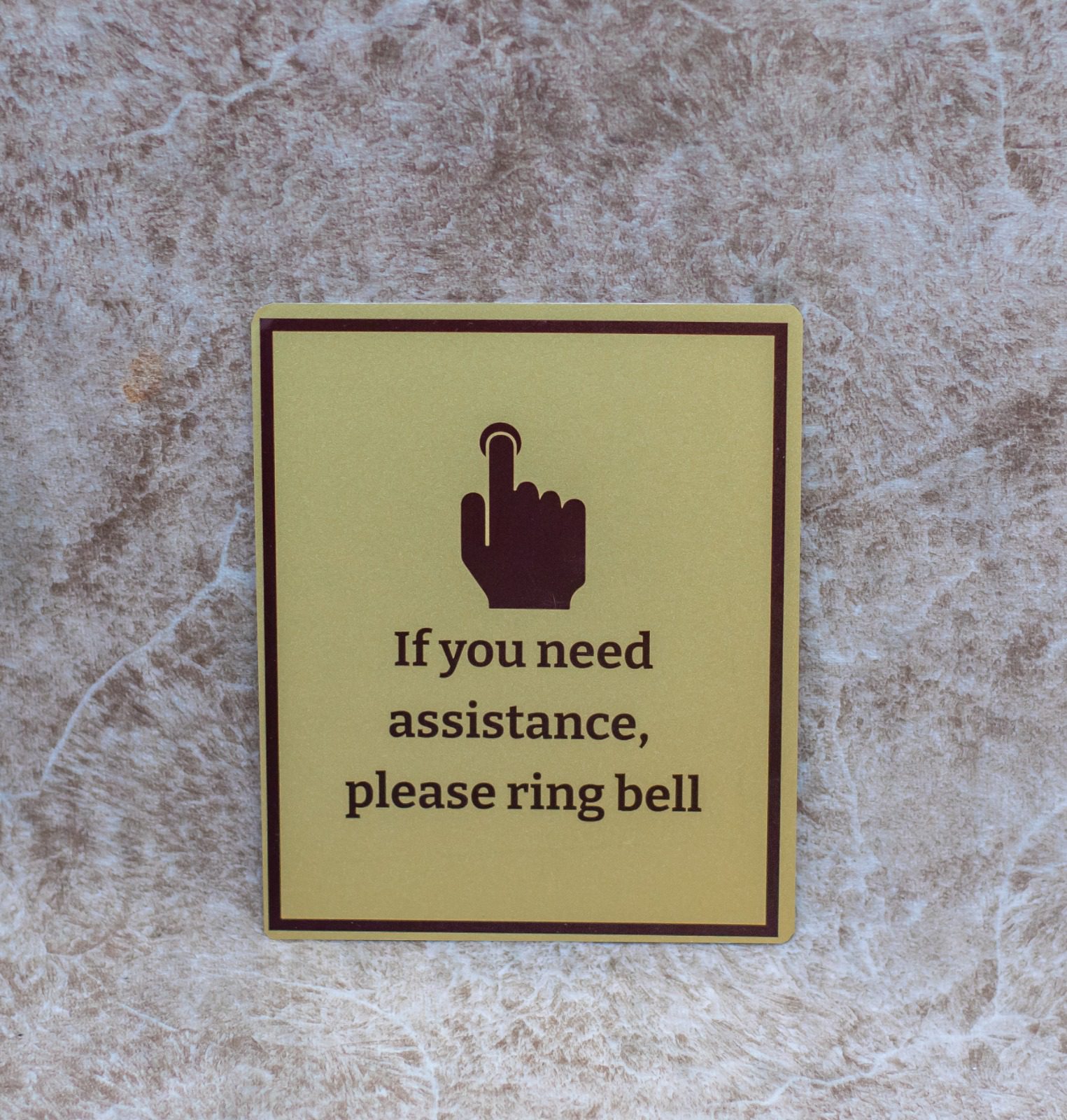 Universal Clarity: Featuring a bold hand-bell icon and easy-to-read serif font, it ensures your “ring for service” message is understood instantly by everyone.