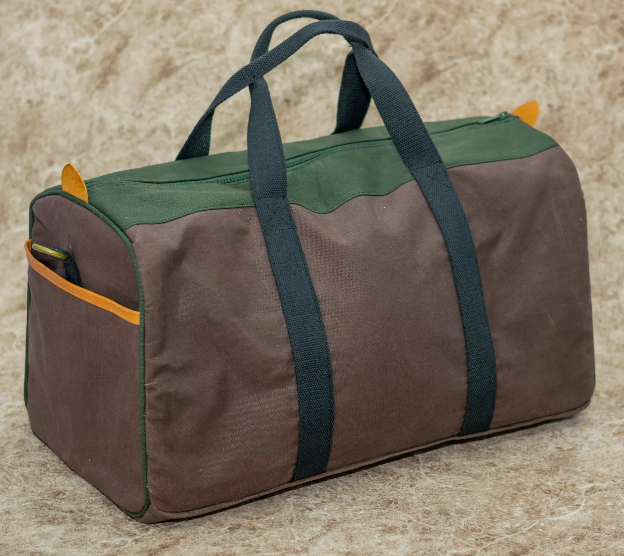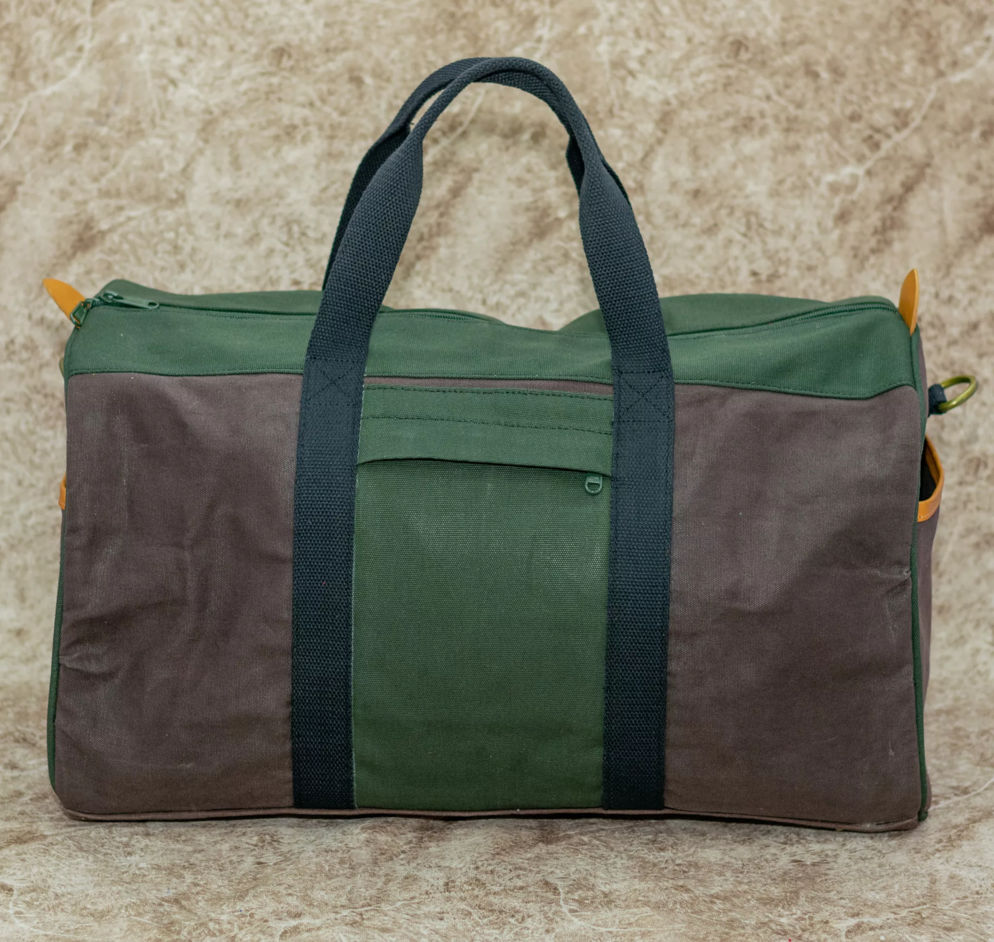 Travel in style with the Green and Brown Canvas Travel Bag. Whether for a weekend getaway or a longer journey, this bag is the perfect companion for your adventures.