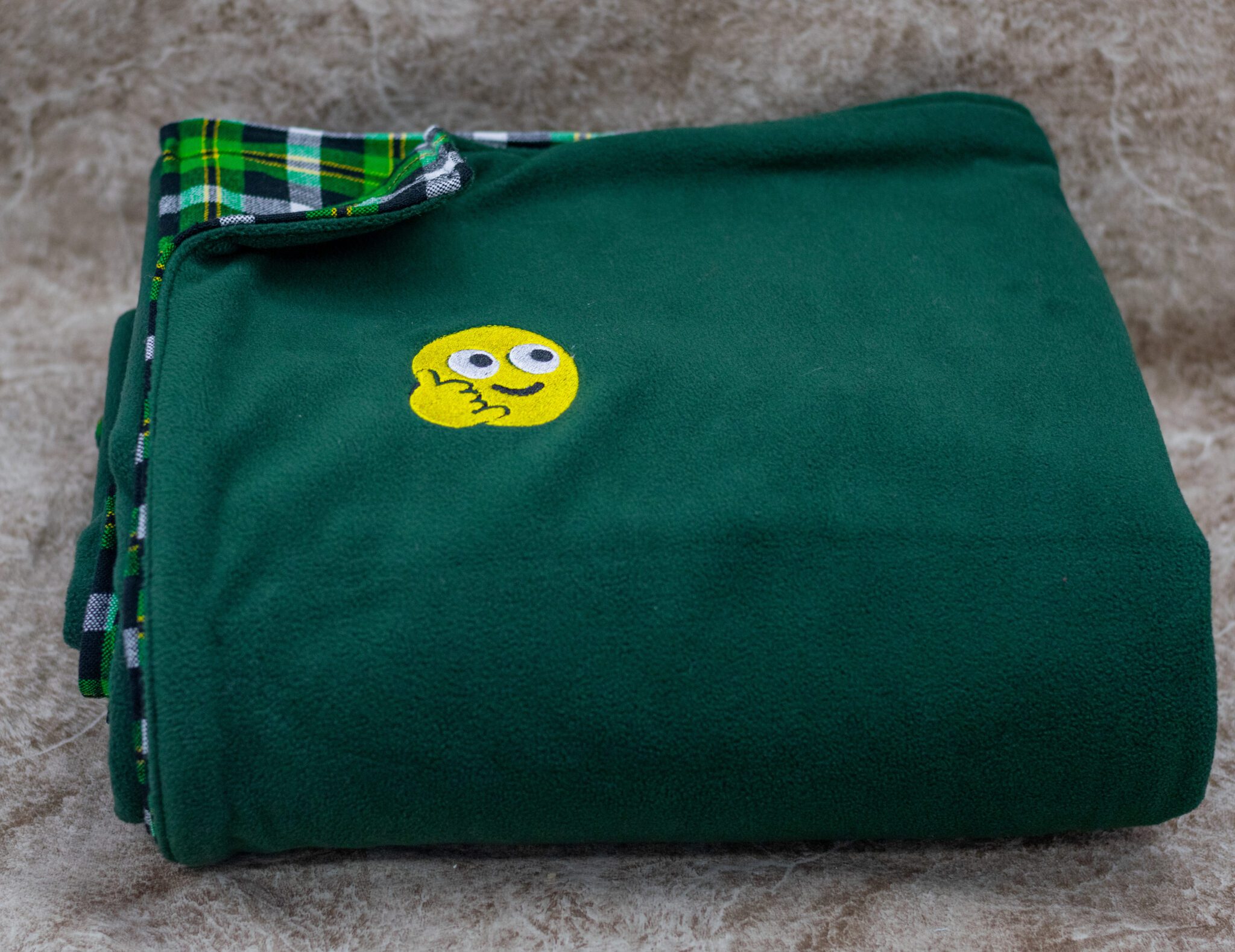 Green Maasai Fleece Blanket Branded With An Emoji