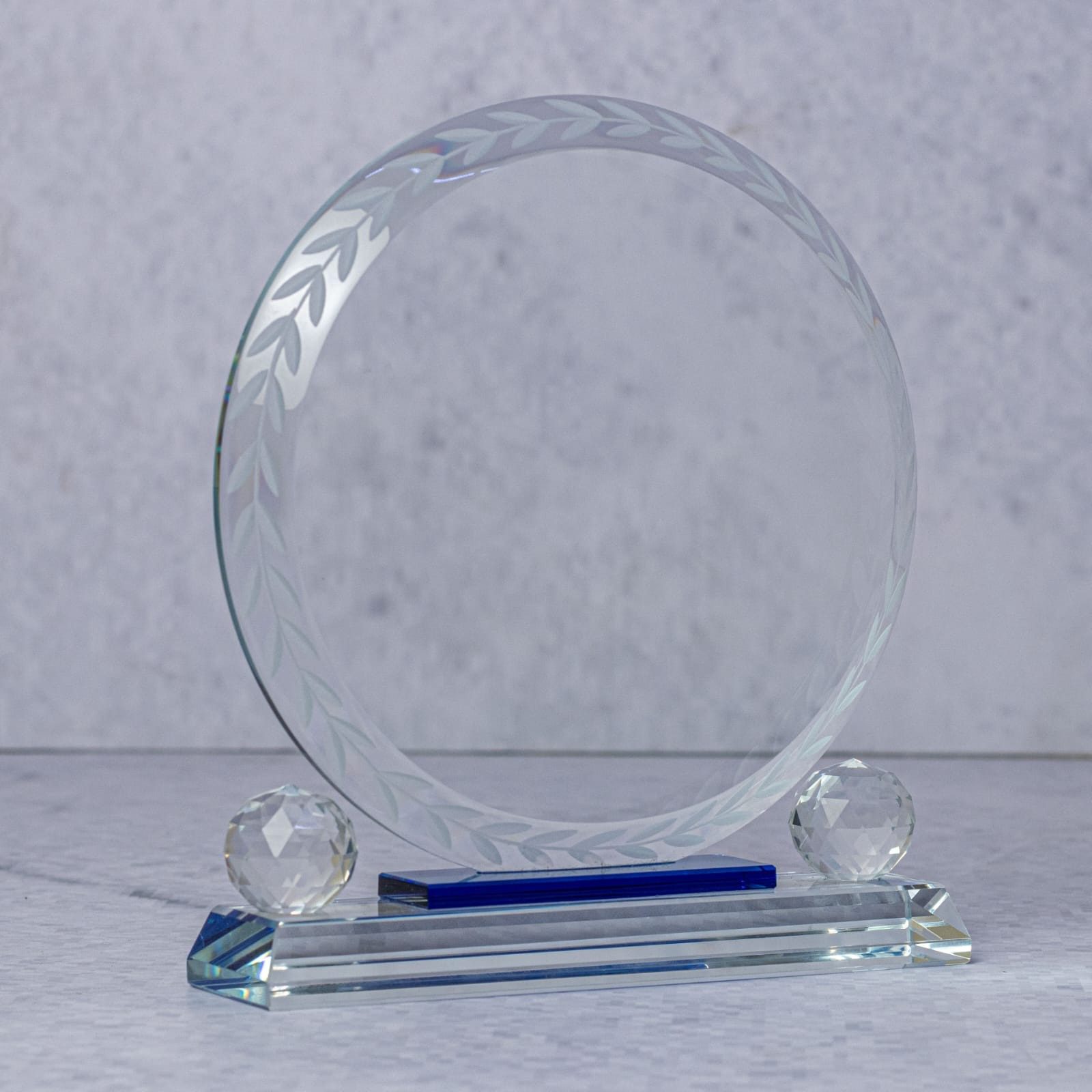 Celebrate excellence with our Handcrafted Fine Glass Award, a beautifully designed recognition piece that combines elegance and sophistication. Crafted from high-quality fine glass, this award is mounted on a clear rectangular base and enhanced with two spherical crystal accents, creating a unique and modern look that stands out at any event.