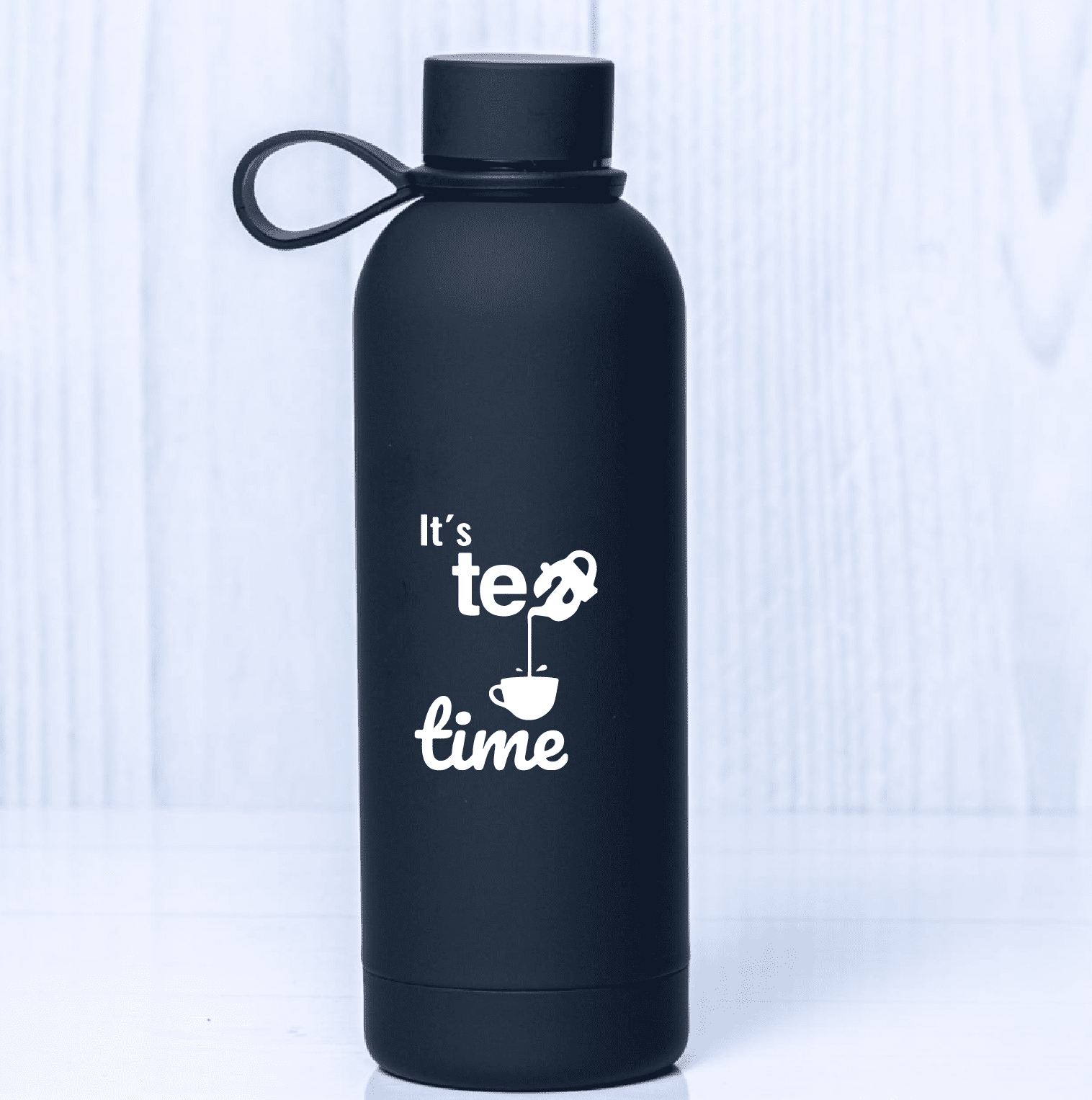 Elevate your daily tea ritual with our “It’s Tea Time” reusable bottle, crafted for tea enthusiasts who prioritize style, sustainability, and convenience. With its sleek, matte-black finish and minimalist design, this bottle is perfect for use at home, in the office, on the go, or during outdoor adventures.