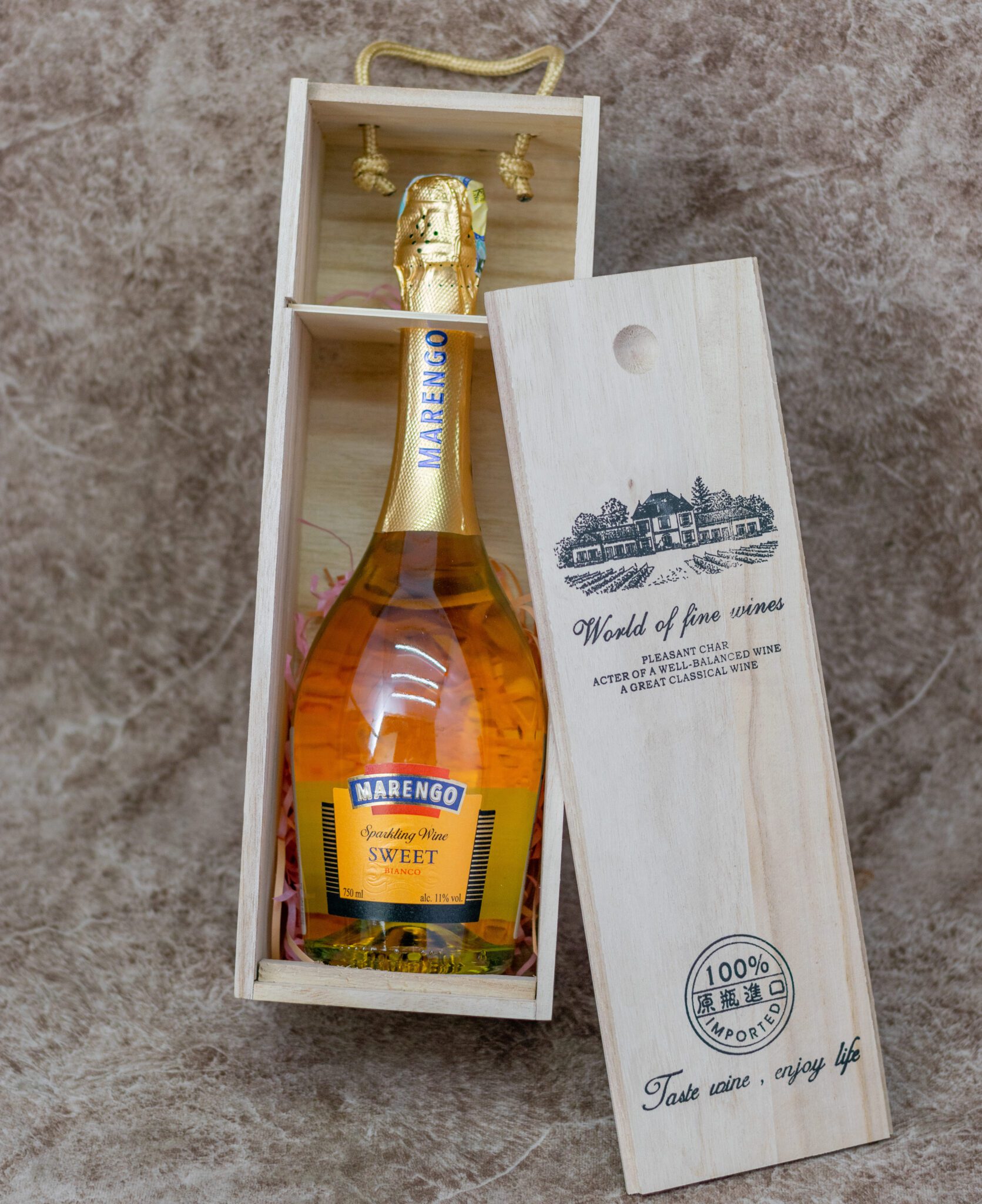 Looking to add a touch of sparkle to your special moments? Our Marengo Sweet White Sparkling Wine in an elegant wine box is the perfect way to toast to life’s beautiful occasions.