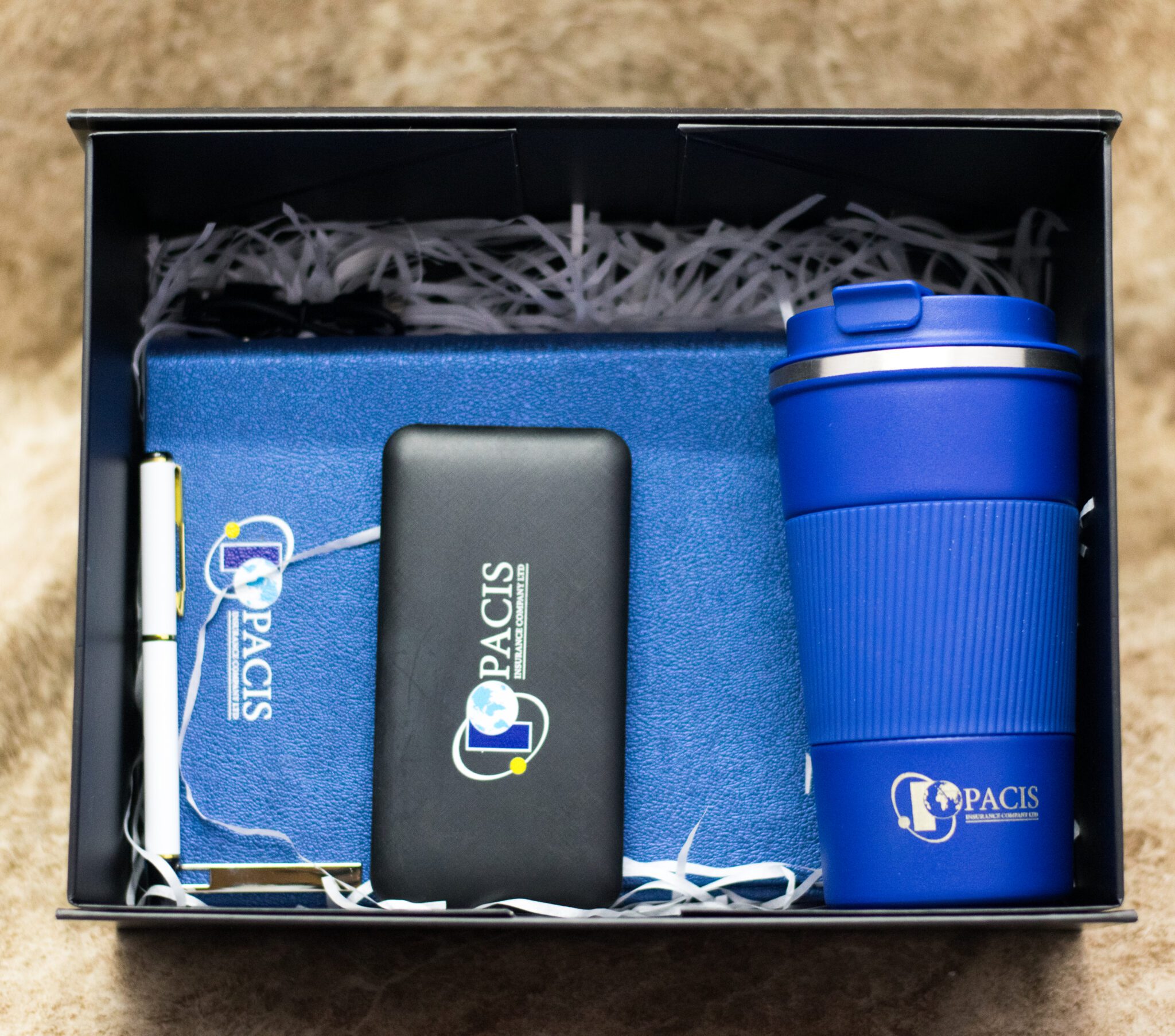 Make a lasting impression with this premium corporate gift box set, thoughtfully curated for professionals and business partners. This elegant set includes a branded travel mug, notebook, power bank, and pen, all neatly packaged in a sleek gift box for a polished presentation.