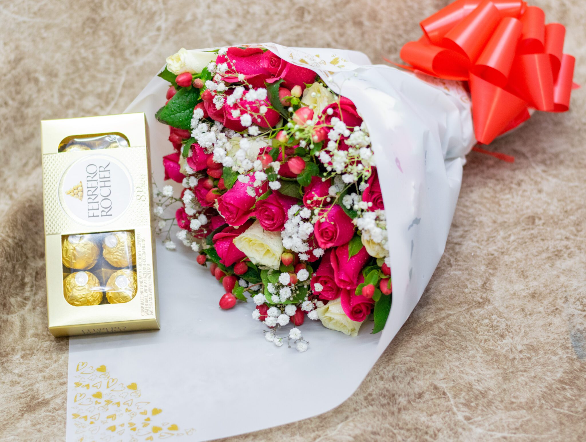 Premium Quality: Fresh, hand-arranged roses paired with world-renowned Ferrero Rocher chocolates