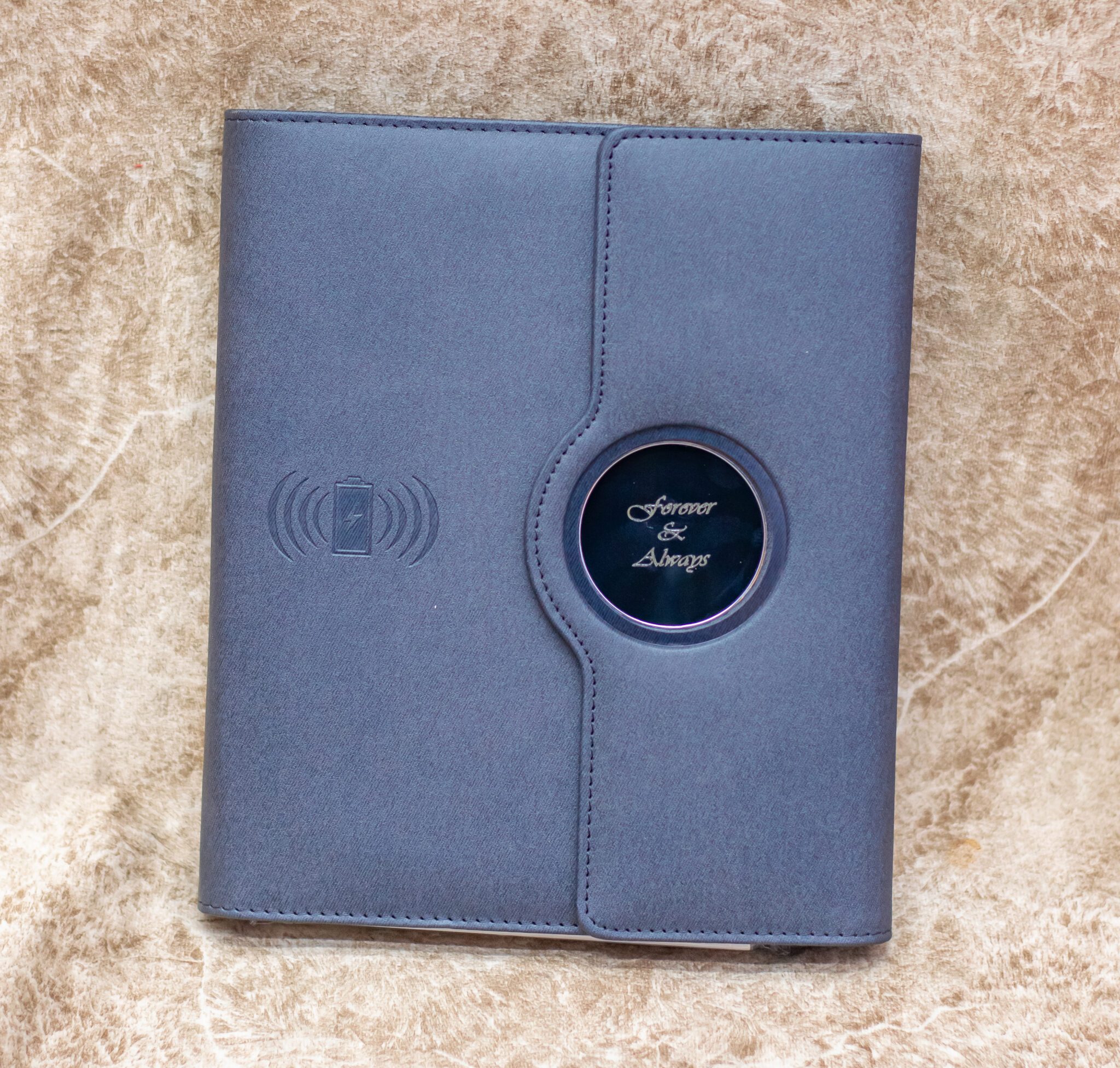 Premium Faux Leather Cover – Sleek, professional, and engraved with a heartfelt message: “Forever & Always”.