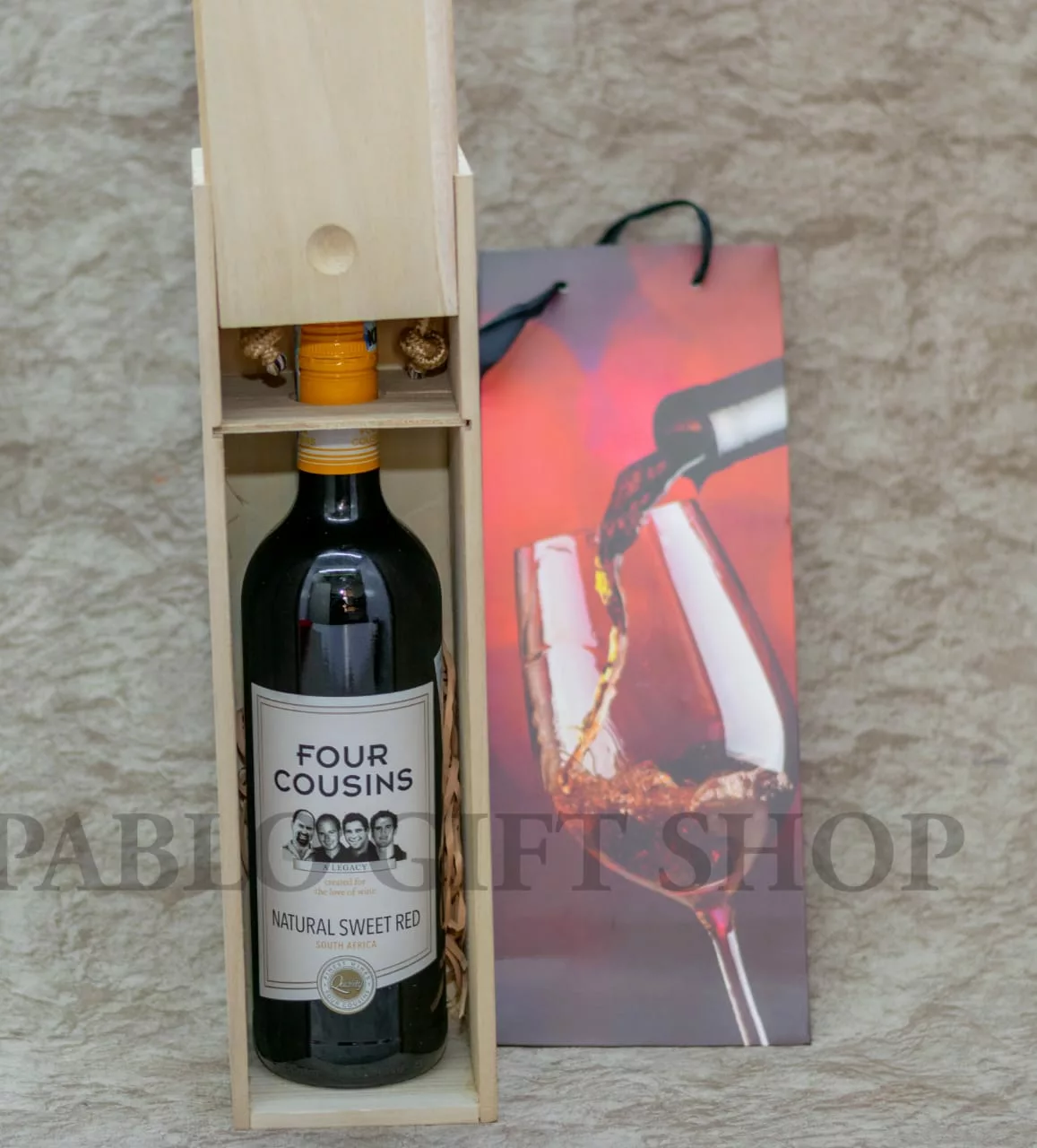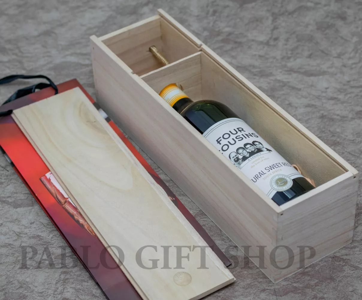 The lid of this wine gift box is easy to slide on and off; insert tissue paper or wrapping material to provide extra stability while traveling