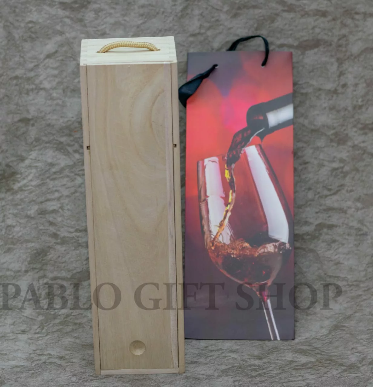 This Wine Bottle Gift Box has a handle and sliding closure It is Made of paulownia wood, and can be painted, engraved, and or imprinted to make the perfect personalized wine box