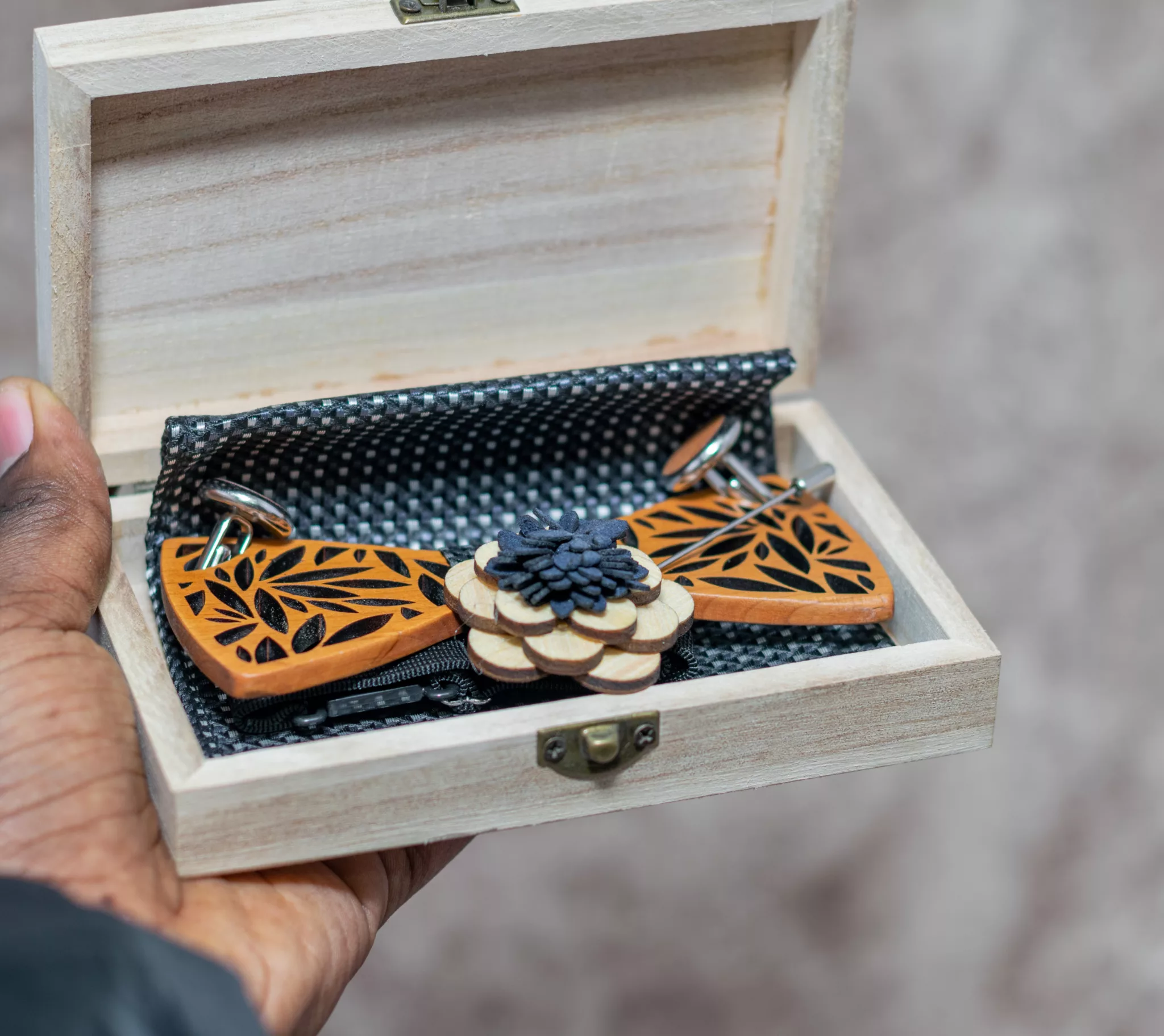 Make a bold statement with this unique wooden bow tie. Perfect for formal and casual occasions alike, it adds a touch of rustic charm to any outfit.